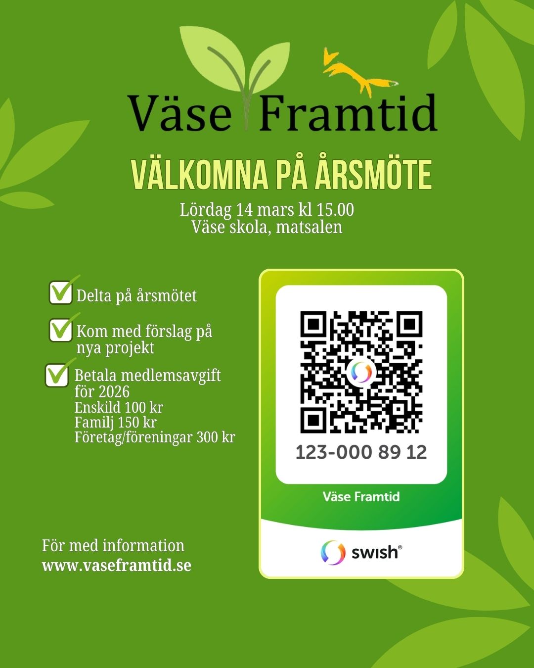 Välkommen till Väse Framtids Årsmöte, vi hoppas på en stor uppslutning då det är NI medlemmar som gör föreningen möjlig!